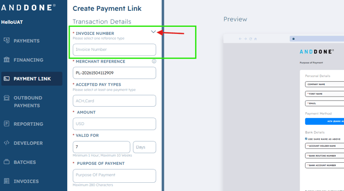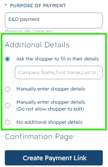 Next enter the Purpose of Payment (indicates to your shopper what the payment is for)