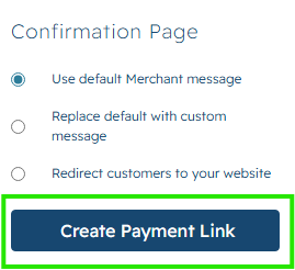 Next- select your Confirmation Page preferences: default message, a custom message, or to redirect to your website.