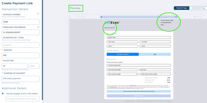 Use the Preview screen to see what shoppers will receive when they click the payment link.