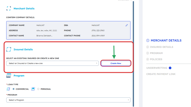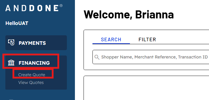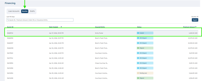 Simply click on Financing and then Create Quote on the left side menu bar in order to create a new premium financing quote.