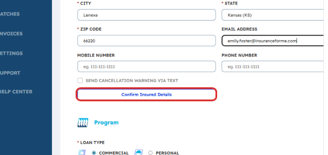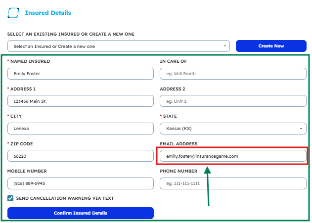We recommend providing your insured's email address and mobile number, to allow for streamlined email and text communication capabilities.