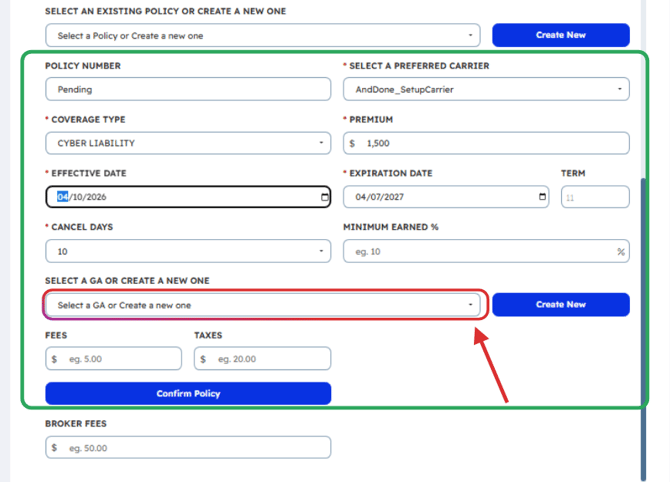 Once you have entered Taxes & Fees -click on Confirm Policy
