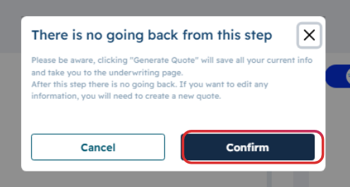 Popup box will appear reminding you that you cannot edit the policy details once you click confirm.