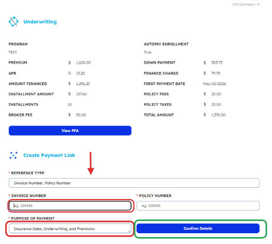 Purpose of Payment is pre-populated, however you may edit this field per your preference.