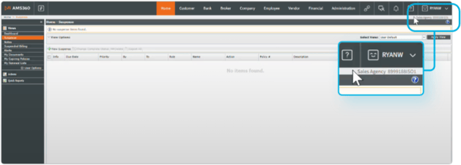 2. Locate your Sales Agency Number in the upper right hand corner of your screen, directly below your username.